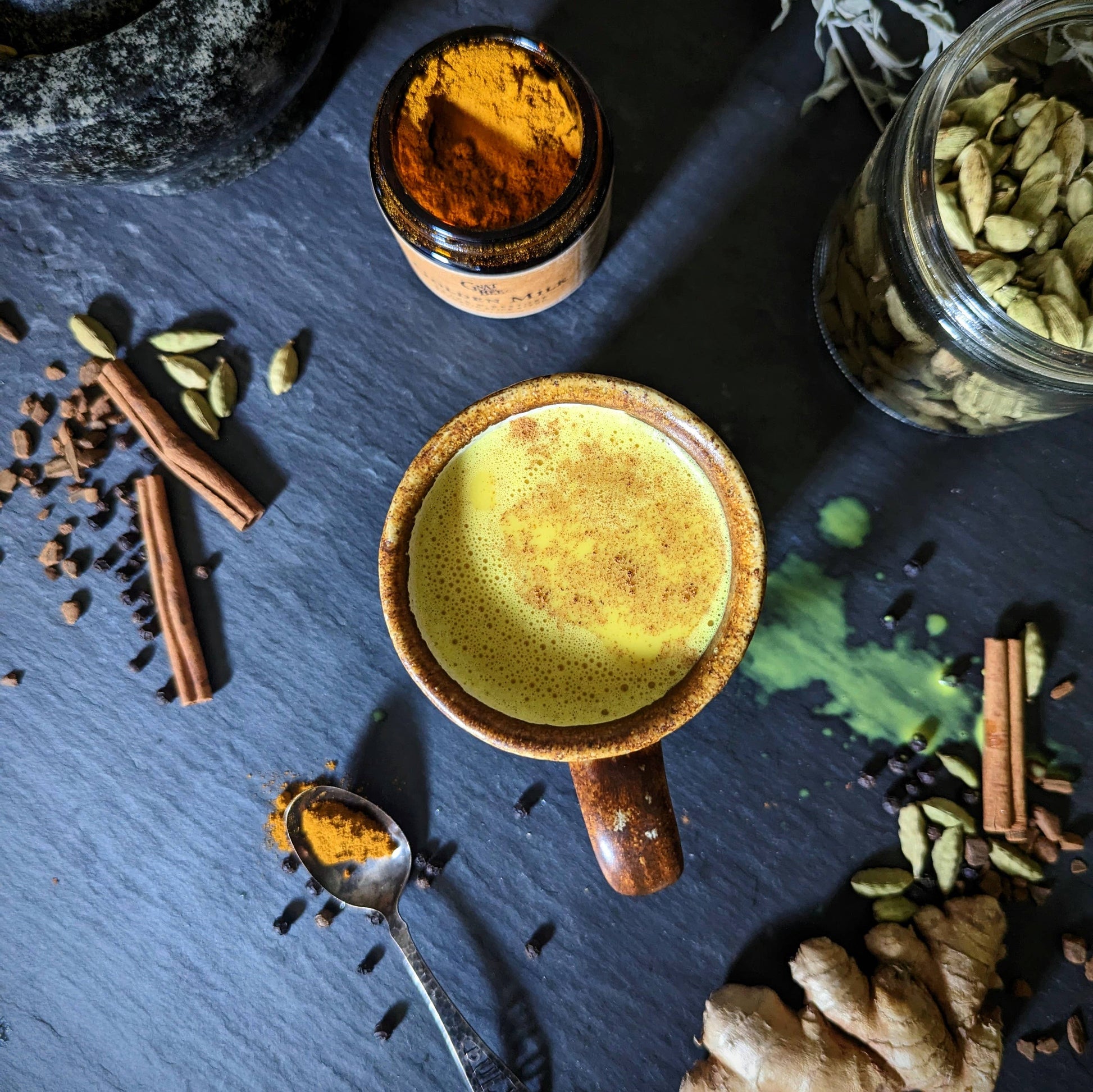 To Brew: Simmer one cup of your favorite milk or water, add (at most) 1 teaspoon of golden milk powder, sweeten to taste and enjoy!
