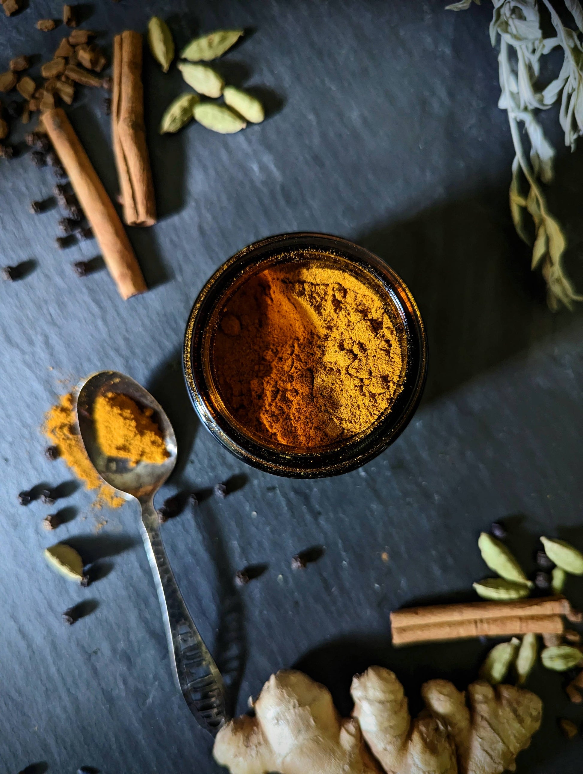 Flavor: Rich and creamy, warming to the body & soul. Full-bodied chai spiced with cinnamon, ginger, and cardamom - these spices are used in high ratio to balance the turmeric flavor.