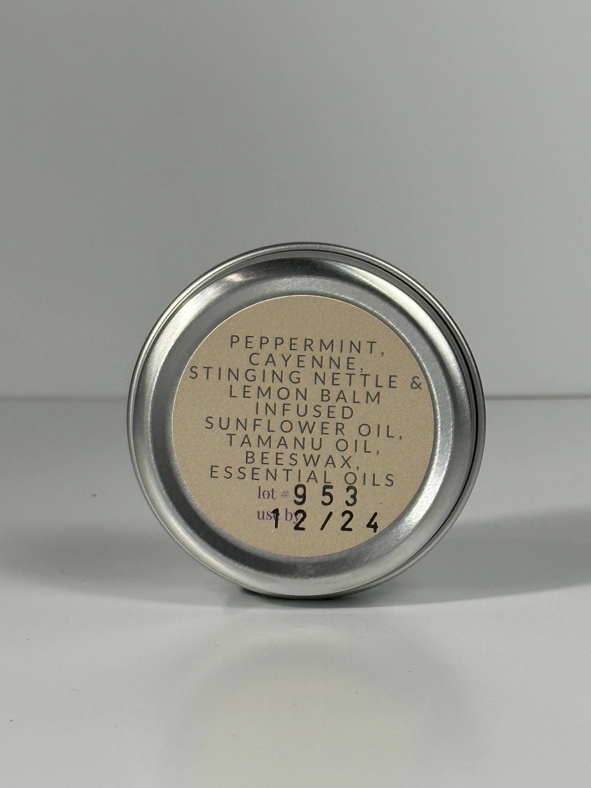 This salve utilizes wildcrafted herbs including peppermint (Mentha x piperita) and needles from White Pine (Pinus strobus). Pine needles have analgesic properties and are anti-inflammatory as well. Peppermint also has pain relief properties, and can help reduce muscle spasms. All of this combined makes for a go to salve when you feel a headache coming on. I use mine for tension headaches. Rub on your forehead, on the neck and behind the ears as needed.
